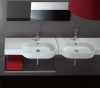 Раковина HATRIA AREA YOUY01 накладная. Раковина-столешница. Чаша справа. С 1 или 3 отверстиями для смесителя. С отверстием перелива. Дополнительно: полотенцедержатель, керамическая полка с пополотенцедержателем и без, подвесная полка. Монтаж на стене с помощью крепежа, на мебели, столешницах и подстольях.